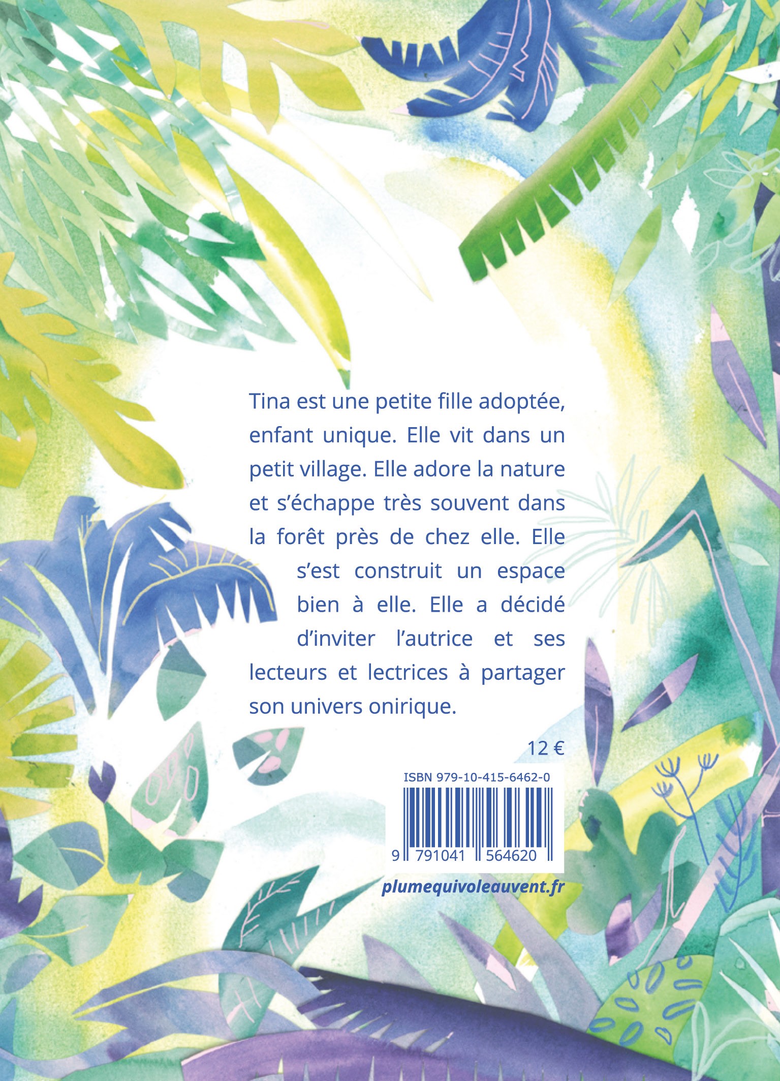 Tina est une petite fille adoptée, enfant unique. Elle vit dans un petit village. Elle adore la nature et s’échappe très souvent dans la forêt près de chez elle. Elle s’est construit un espace bien à elle. Elle a décidé d’inviter l’auteur et ses lecteurs à partager son univers onirique.